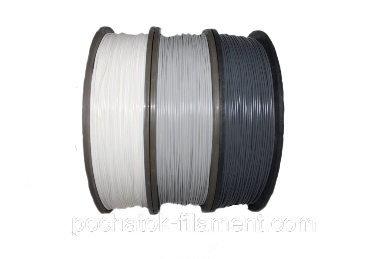 Набір 3в1 PLA філамент пластик для ЗD друку Pochatok Filament 1,75 мм. 0,75 кг. Білий, Світло-сірий, Сірий